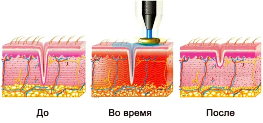 В результате заметно подтягиваются «брыли», приподнимаются брови, носогубные складки становятся менее выражены, шрамы от акне и растяжки разглаживаются, уменьшаются. Пропадает эффект апельсиновой корки. Кожа становится более упругой на ощупь, выравнивается цвет лица: тени под глазами светлеют, желтый оттенок сменяется розовым.